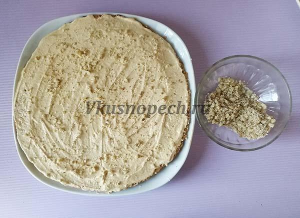 Промазываем кремом и посыпаем измельченными орехами.