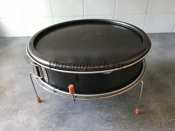 Форму с тестом необходимо прокрутить несколько раз по часовой стрелке. Таким образом, удастся избежать появления слишком высокой шапочки при выпечке.