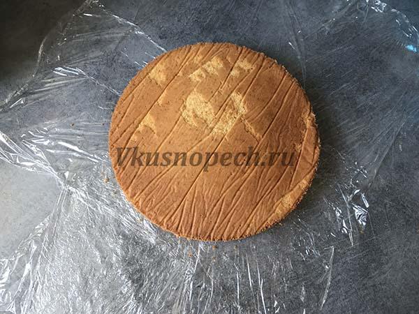 А чтобы его было удобно делить на части, заверните корж в пищевую пленку и подержите минут 20 в холодильнике.