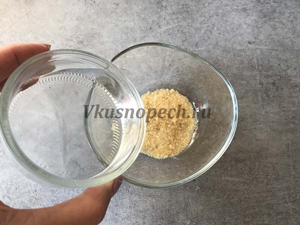 Для приготовления крема, первым делом замачиваем желатин в 50 мл воды.