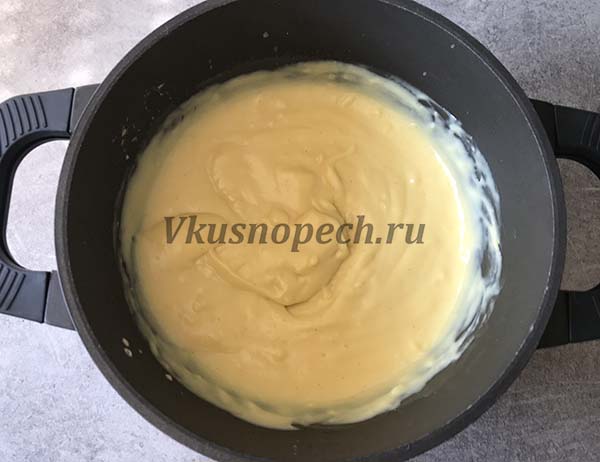 Увариваем заварную основу до загустения, постоянно мешая, чтобы не образовались комочки.