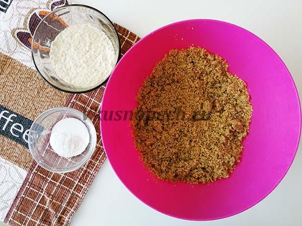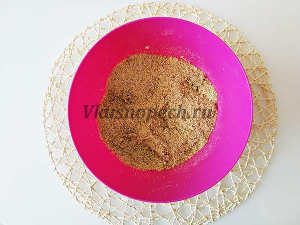 Ядра перемалываем блендером в мелкую крошку. Пересыпаем в глубокую емкость.
