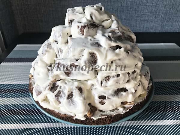 Переходим к сборке торта “Панчо” с ананасами и грецкими орехами.