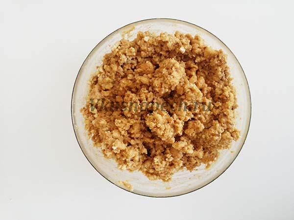 Равномерно распределяем твердые комочки по объему всей смеси. На плоскую тарелку или поднос выкладываем в виде горки.